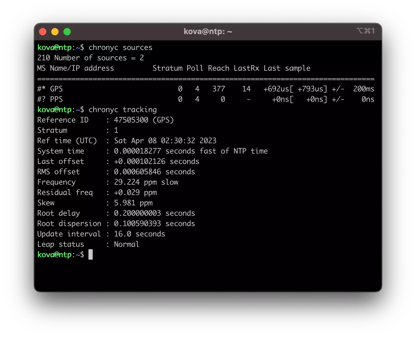 chronyc trackingThe output should look similar to the image at the top of this post.