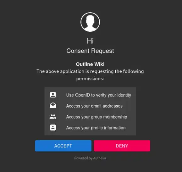 After restarting Authelia, you will no longer be prompted to provide consent.