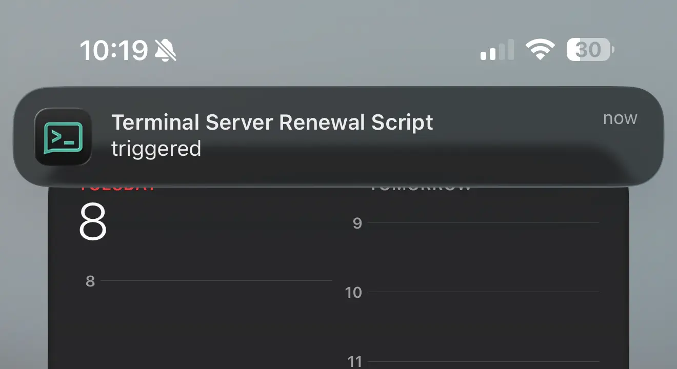 Si todo está configurado correctamente, recibirás información de estado de tus scripts directamente en tu teléfono.
